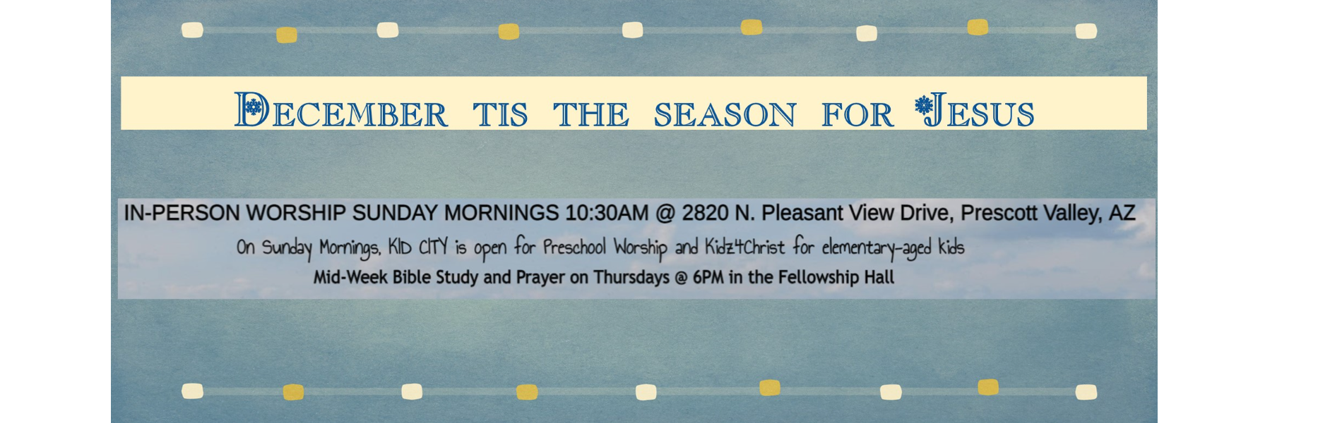 Thank you for visiting First Southern Baptist Church of Prescott Valley online. We’re glad to have you stop by. Please feel free to click around our site to learn about our church, explore the ministries, and to find out more of what’s happening.